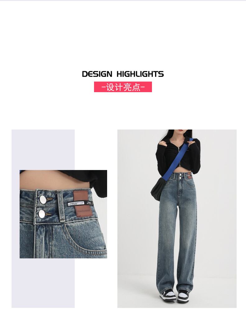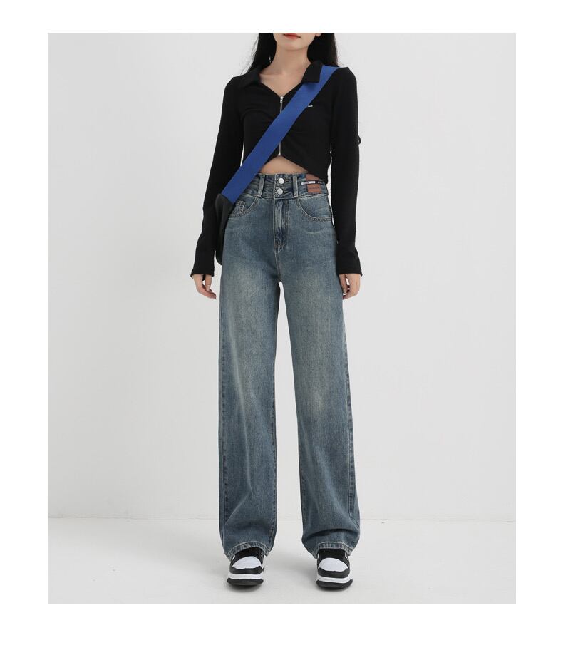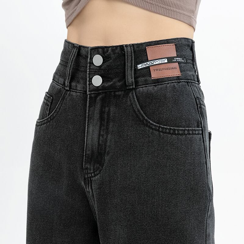 アメリカン ストレート ジーンズ レディース 2022年秋冬新作 ハイウエスト ゆったり 薄手 ワイドレッグ パンツ モップ ブラック グレー ハイウェスト オータム 秋物 ワイドパンツ youqi42759288398