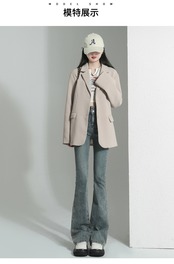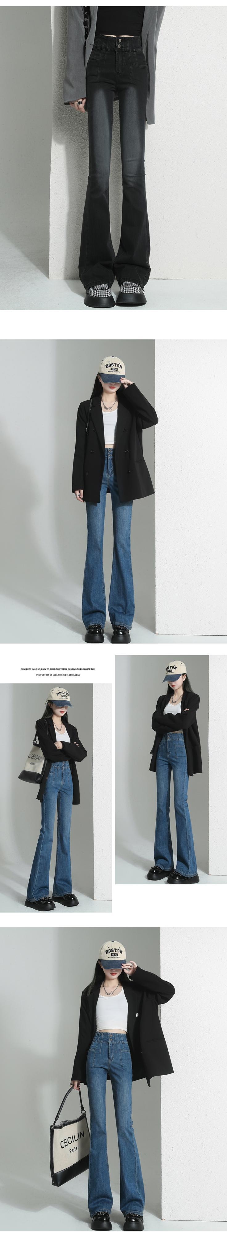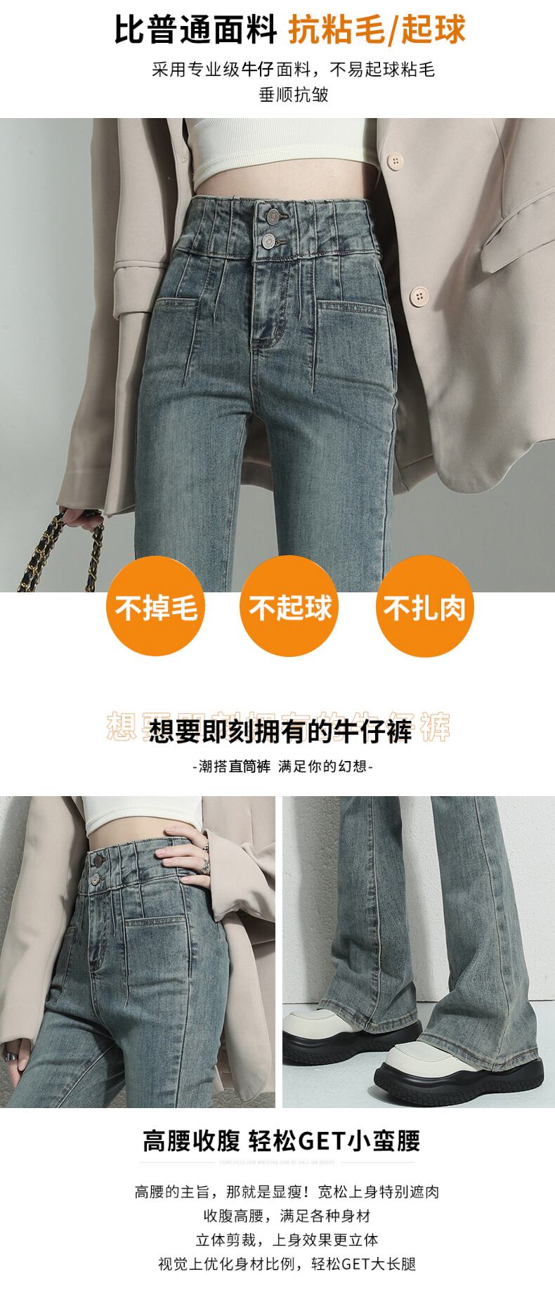 黒とグレーの秋と冬の新しい弾性フレア パンツ ニッチなデザインのハイウエスト ジーンズの女性は薄くて背の高いシックです レッド ブラック エラスティック 伸縮 オータム 秋物 ウィンター 冬物 youqi40184564283