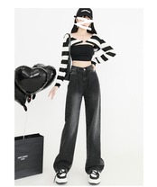 レトロなブルー プリーツ デザイン ドレープ ワイドレッグ ジーンズ ルーズ モップ パンツ 2022 秋のスタイル 痩身と多用途 オータム 秋物 youqi95135129306