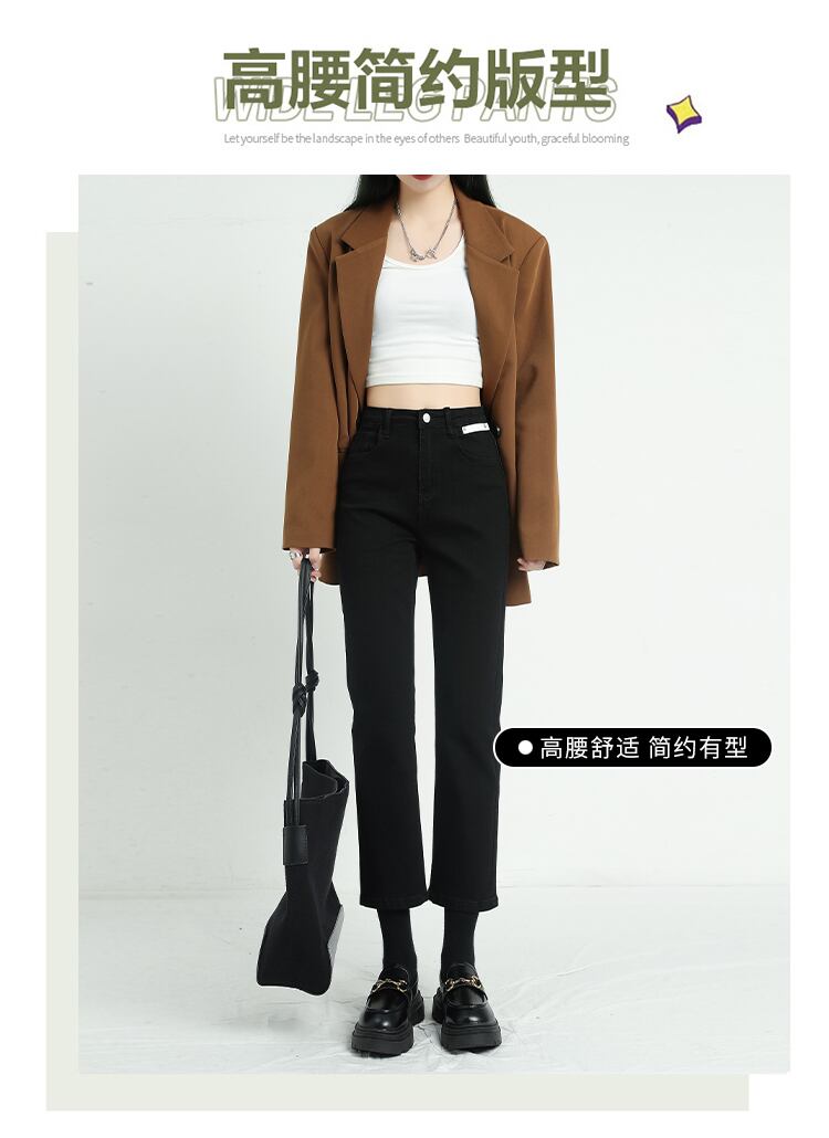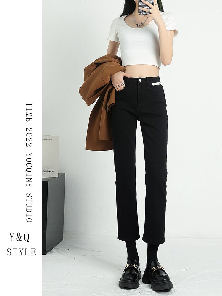 2022 秋の新ハイウエストシガレットパンツブラックジーンズ女性は薄くて背の高いストレートパンツ 9 点小さい ハイウェスト オータム 秋物 youqi75057901024