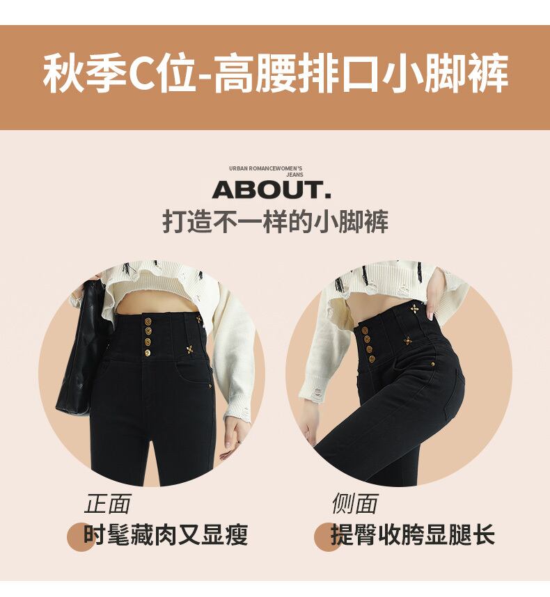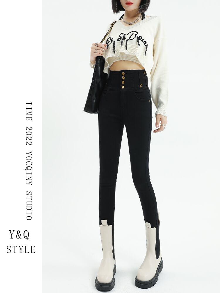 ウエストブラックジーンズ女性の秋と冬 2022 新しいスキニーフィートオールマッチ薄いペンシルパンツ ins 潮 v オータム 秋物 ウィンター 冬物 youqi56048896238