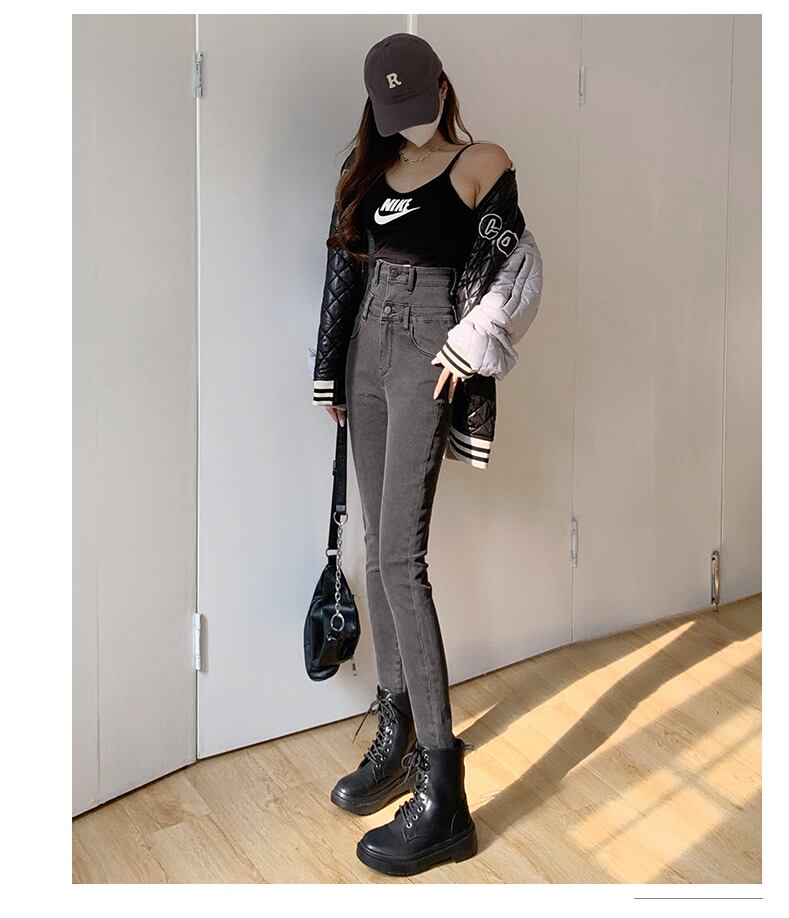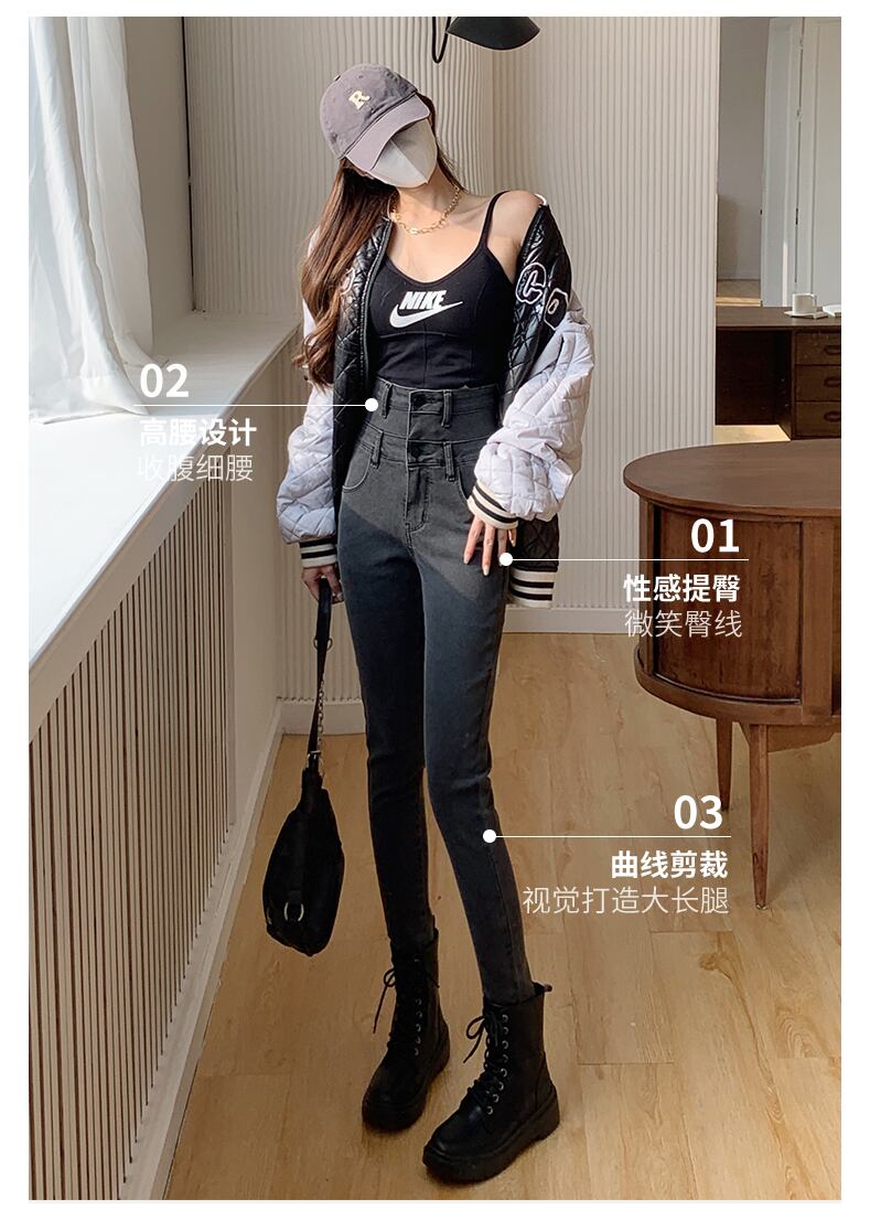 超ハイウエスト黒弾性ペンシルパンツスキニージーンズ女性の腹オールマッチペンシルパンツヒップリフト痩身デザイン ハイウェスト ブラック エラスティック 伸縮 youqi69356060364