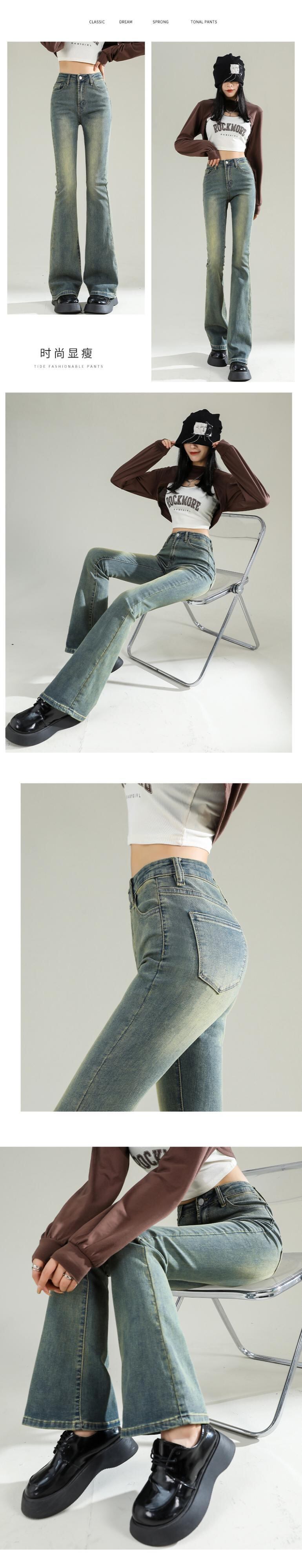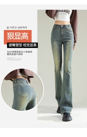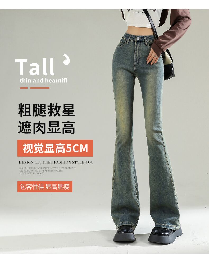 ノスタルジック ブルー ハイウエスト スリムカット ジーンズ レディース 2022年秋 新作 伸縮性スリムフィット ハイフレアパンツ エラスティック オータム 秋物 youqi76476196568