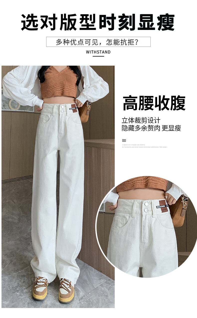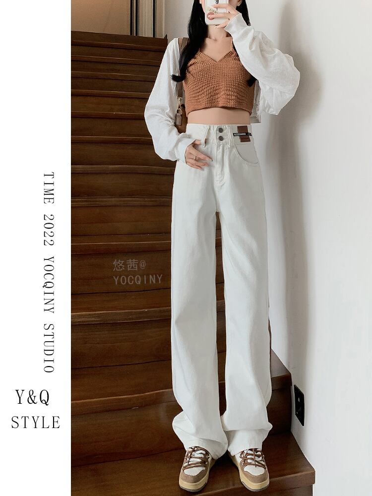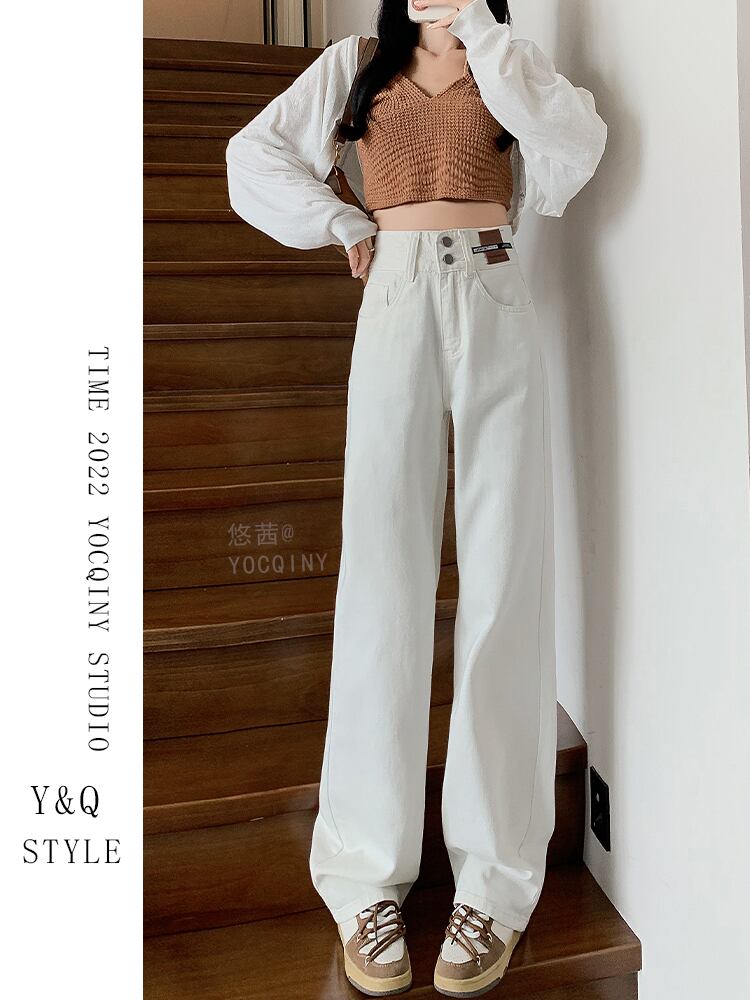 ホワイトワイドレッグハイウエストジーンズ女性用ルーズストレートレッグパンツ2022年秋の新しいスタイルは、床を拭いて薄くシックなオールマッチを見せます オータム 秋物 youqi57076863761