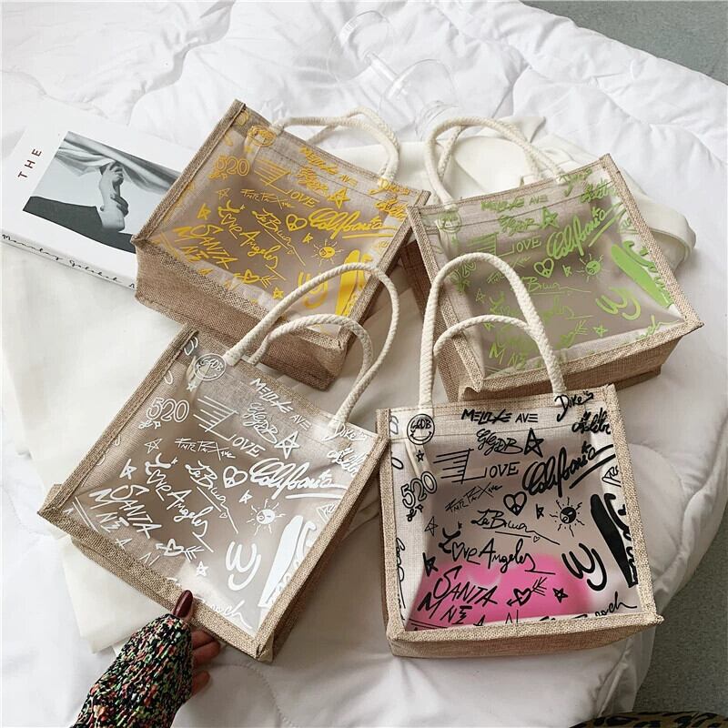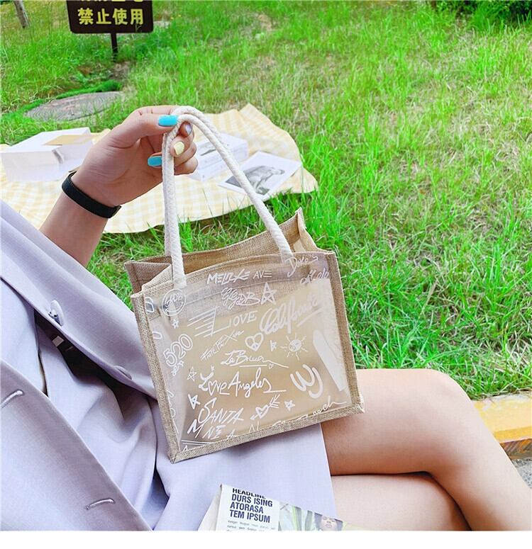 ランチバッグ女性 2021 夏のキャンバスホリデー透明バッグ女性のハンドバッグイン ese 小さな新鮮な落書きバッグトレンド サマー 夏物 maibag41839291347