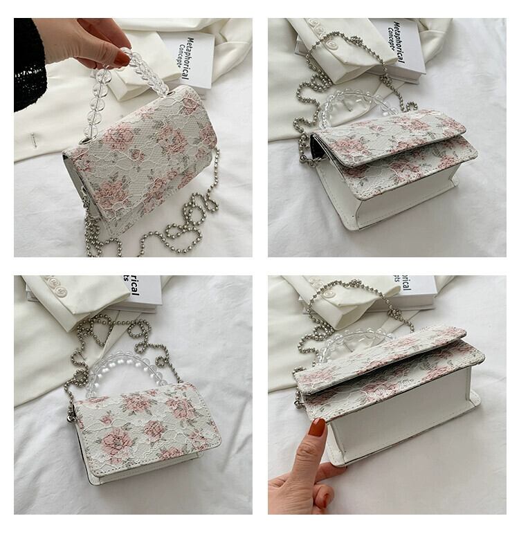 夏の小さなバッグ女性 2021 新ファッションレースフラワーポータブル小さな正方形のバッグオールマッチインチェーンメッセンジャーバッグ サマー 夏物 フラワーデザイン スクウェア maibag51710033548