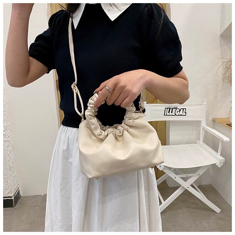 少人数デザインプリーツポータブルソフトレザー小さなバッグ女性のファッションオールマッチ大容量バケットバッグショルダーメッセンジャーバッグ maibag39612534031
