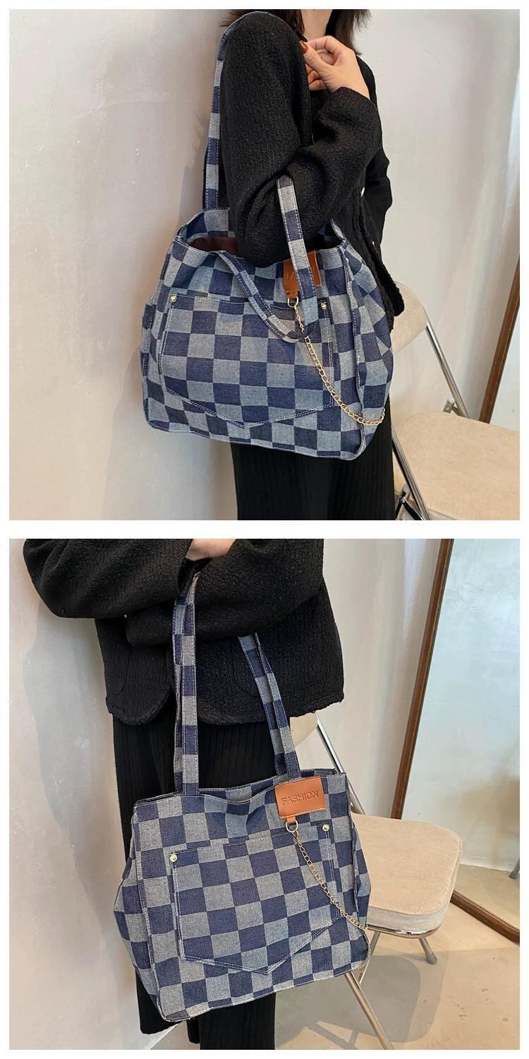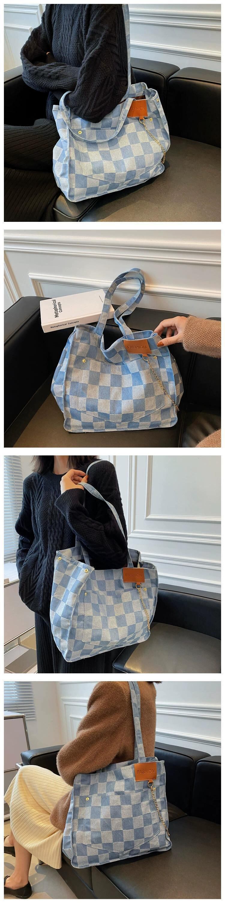 ニッチデザイン市松格子キャンバストートバッグ女性大容量学生cl通勤大型バッグシンプルショルダーバッグ maibag49638112041