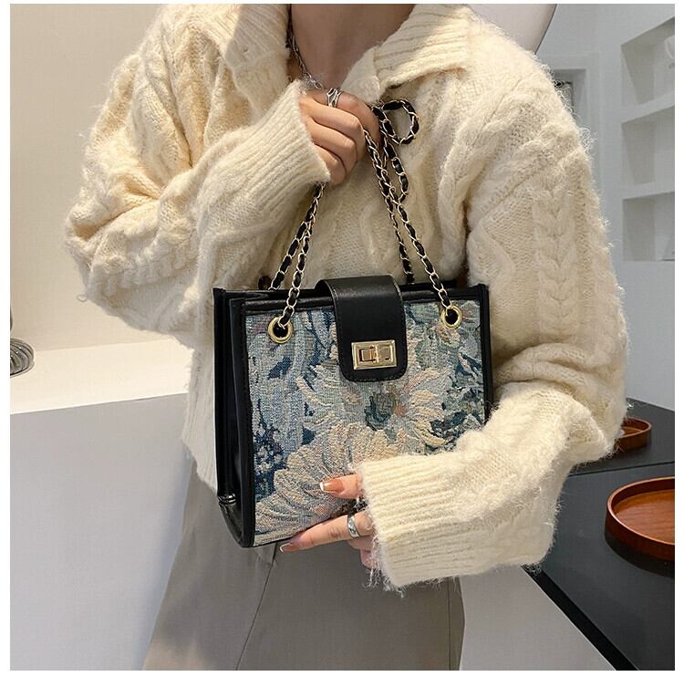 キャンバス油絵バッグレディース 2021 新しいハイエンド感覚の eign スタイルシングルショルダー大容量チェーントートメッセンジャー小さなスクエアバッグ トートバッグ スクウェア maibag98672462479