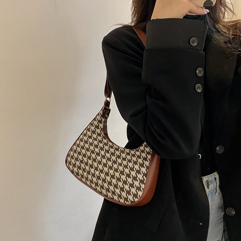 ニッチデザインネット赤同じバッグ女性 2021 新千鳥格子ヒョウ柄フレンチ脇の下バッグワンショルダーバゲットバッグ レッド ショルダーバッグ maibag42284492435