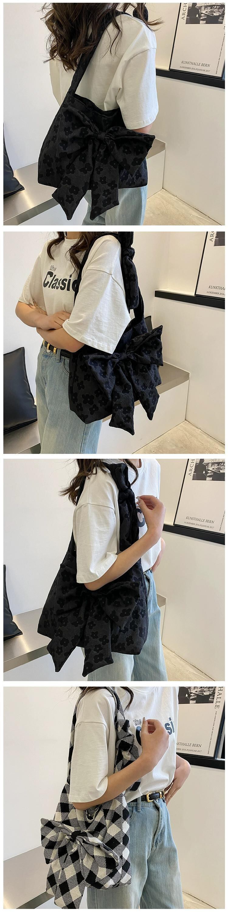 かわいいちょう結びキャンバスバッグ女性クロスボディ大容量ショルダーバッグソフトハートバケットバッグトートショッピングバッグ リボン 大人ガーリー スウィート キュート カジュアル トートバッグ maibag23161752270