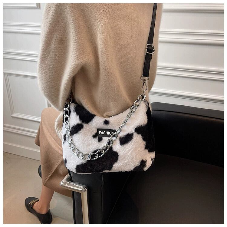 ese と乳牛チェーンバッグ女性 2022 新しいトレンディなぬいぐるみ脇の下バッグゼブラヒョウ柄ハイエンドワンショルダーメッセンジャーバッグ maibag79506267295