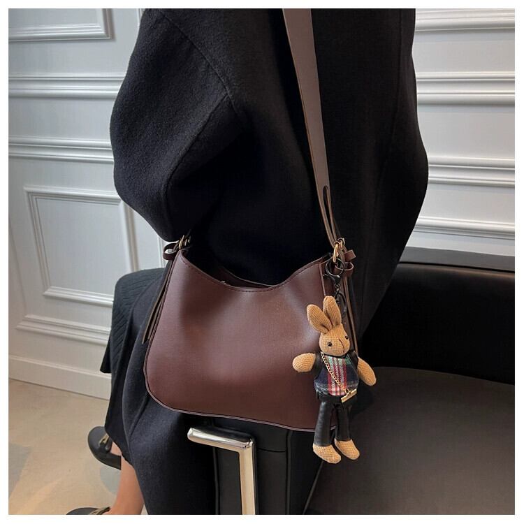 秋と冬のテクスチャードスモールバッグレディースバッグ2021新しいファッションニッチブロードバンドショルダーメッセンジャーバッグハイエンドバケットバッグ レッド オータム 秋物 ウィンター 冬物 maibag42838420517