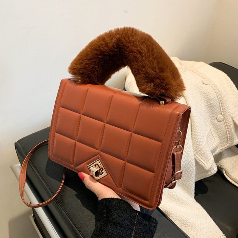 テクスチャードバッグ女性 2021 新バージョンのトレンディな Lingge ぬいぐるみポータブル小さな正方形のバッグ西洋スタイルオールマッチシングルショルダーメッセンジャーバッグ レッド スクウェア maibag38181337244