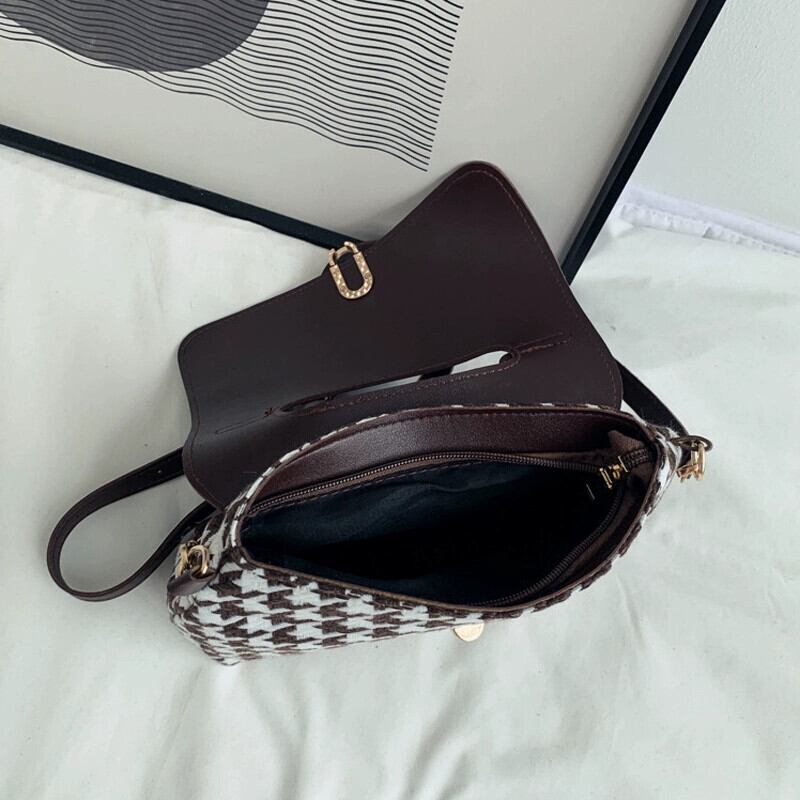 秋と冬のレトロバッグ 2021 新ウールショルダー脇の下バッグカジュアルファッションオールマッチチェック柄メッセンジャーバッグ女性のバッグ オータム 秋物 ウィンター 冬物 maibag49369738218