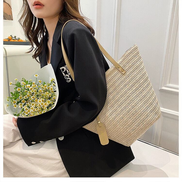 わら織りバッグの女性の 2022 新しいトレンディなホリデー織りフレンチニッチポータブルワンショルダー野菜バスケットバッグオールマッチバケットバッグ maibag67988119622