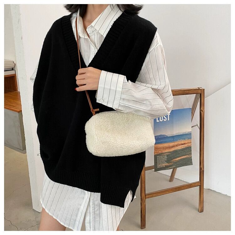 秋と冬の質感のバッグハイエンド毛皮ファッションメッセンジャーバッグ女性 2021 新しいオールマッチシンプルなバケツショルダーバッグ レッド オータム 秋物 ウィンター 冬物 maibag55282480220