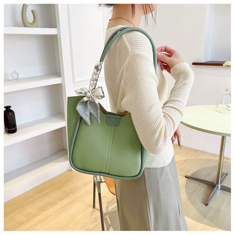 テクスチャードバッグ女性 2022 新色コントラストシンプルなイン絶妙なシルクスカーフファッションポータブルオールマッチワンショルダーバケットバッグ レッド maibag99692498563