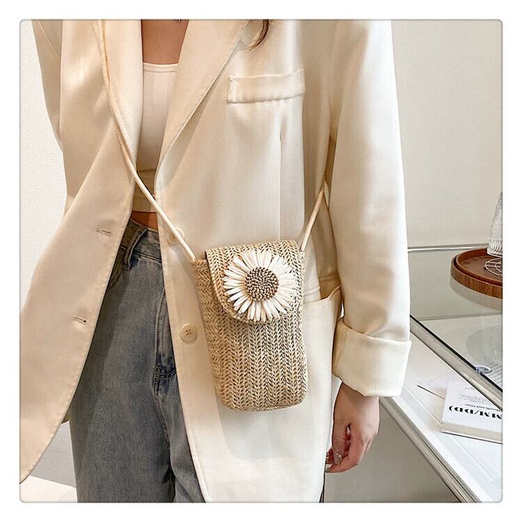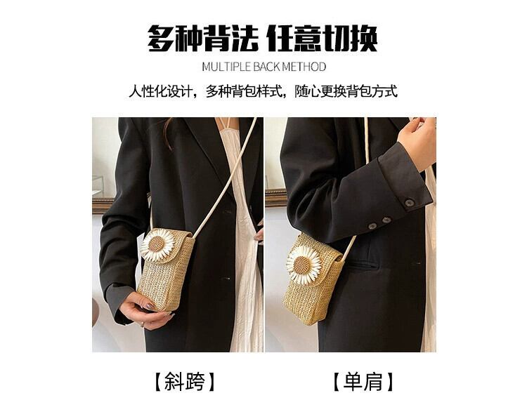 夏わら織携帯電話バッグ女性 2022 新しい小さな新鮮な携帯電話織小さなバッグショルダーメッセンジャーバッグ潮 サマー 夏物 maibag19364432115