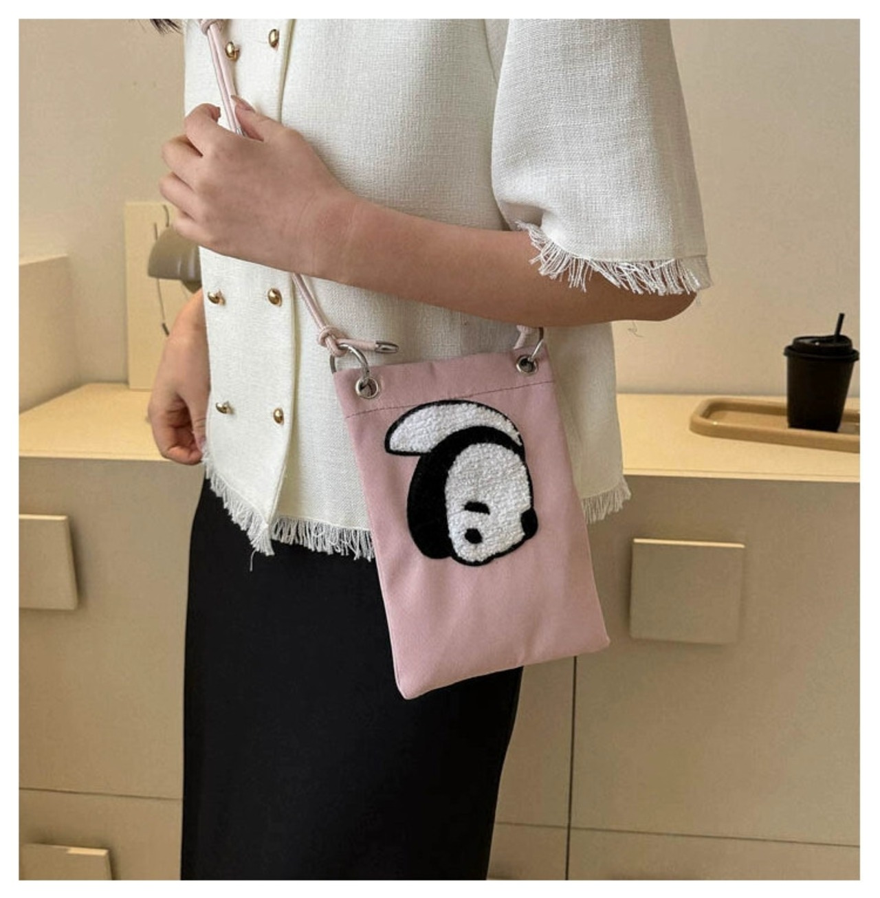 キャンバスバッグ女性の 2023 新しいトレンド漫画携帯電話バッグファッションオールマッチインメッセンジャーバッグパンダ小銭入れ 財布 パスケース maibag441576309