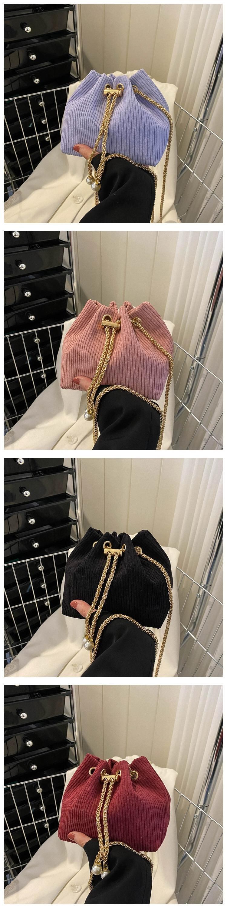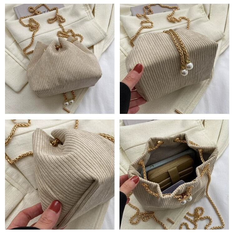 多用途パールチェーン小さなバッグ女性 2023 新しいトレンディなファッションコーデュロイショルダーバケットバッグ小さなメッセンジャーバッグ 真珠 maibag75087614991