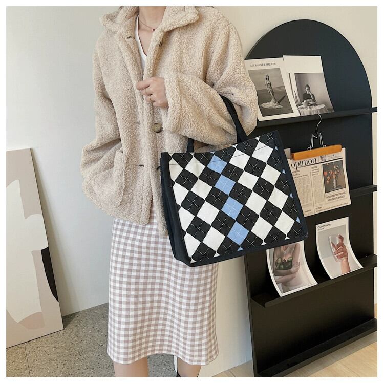 Lingge シングルショルダーバッグキャンバスバッグ女性 2021 冬の新オールマッチ通勤インスタイル大容量 cl トートバッグ ウィンター 冬物 maibag29387788787