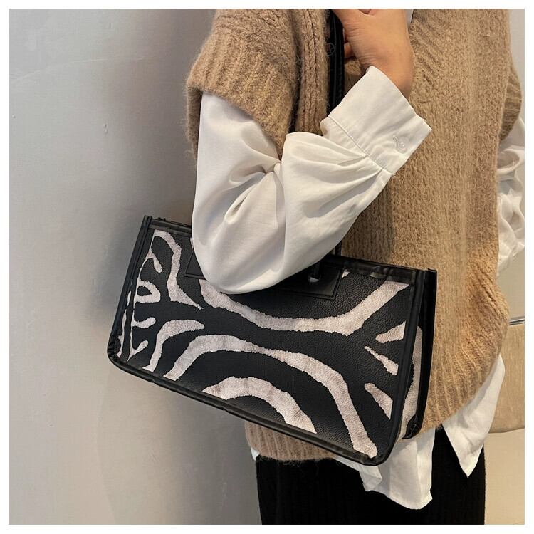 秋と冬のポータブルゼブラプリント大型バッグ女性のオールマッチ大容量ショルダーバッグ 2022 新しいニッチ通勤脇バッグ オータム 秋物 ウィンター 冬物 maibag14605614726