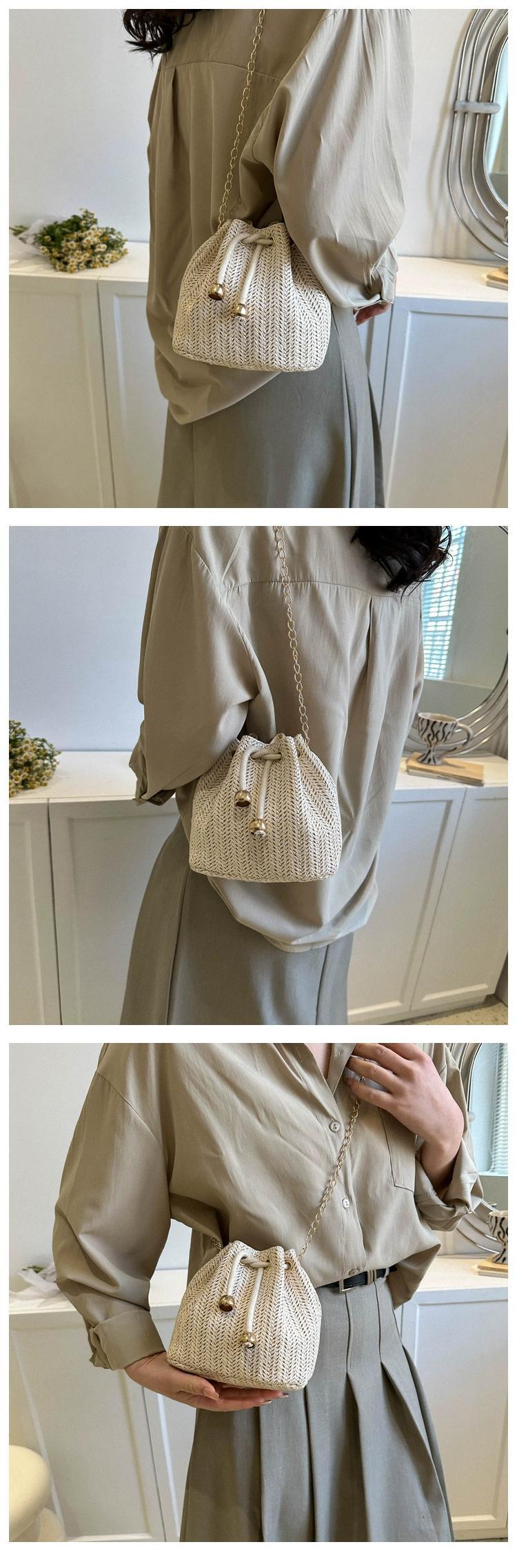 わら織りバッグの女性 2023 新しいカジュアルオールマッチレトロチェーンバケットバッグ海辺のビーチ織りメッセンジャー小さなバッグ maibag37282140193