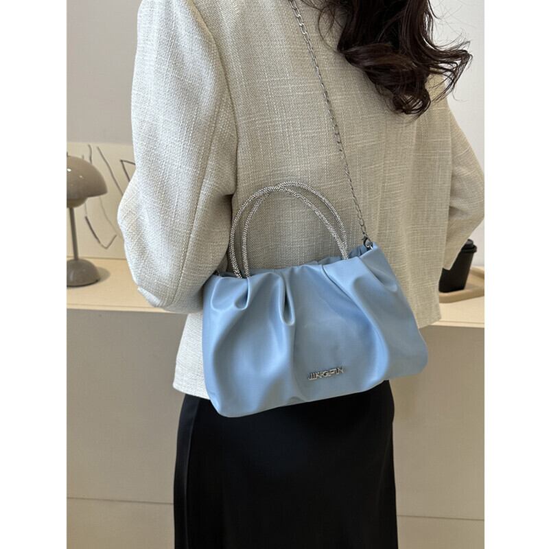2023 新しいトレンドファッション妖精レトロプリーツメッセンジャーバッグオールマッチダイヤモンドがちりばめられたポータブルチェーンワンショルダー小さな正方形バッグ スクウェア maibag50545642444