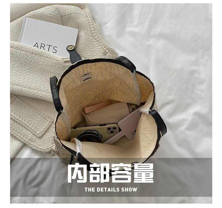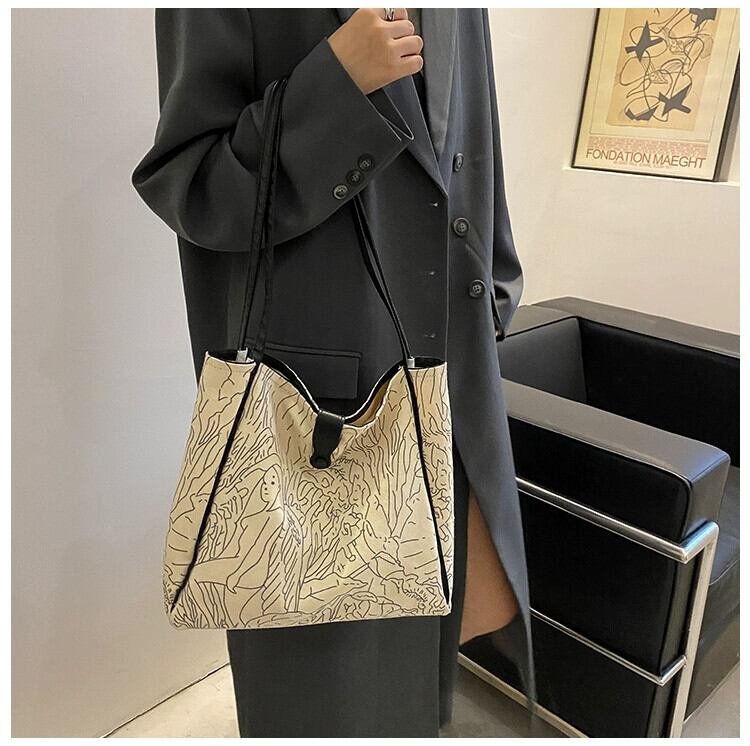 レトロライン落書き大容量バッグ2021新しいカジュアルオールマッチキャンバス通勤ワンショルダーポータブルトートバッグ maibag17269281752