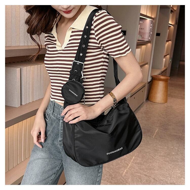 ストリートトレンドナイロンワイドショルダーストラップシングルショルダーメッセンジャーバッグ2023年版大容量学生通勤トートバッグ maibag54404385429