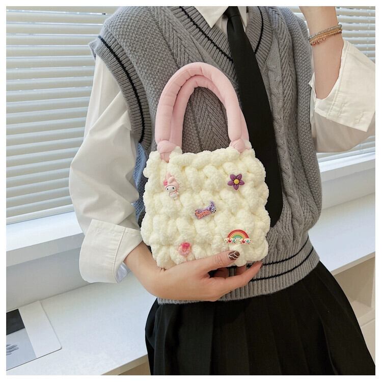 ese と学生マシュマロクラウドバッグ diy 手織りバッグウール素材バッグ自家製友人 maibag60299675711