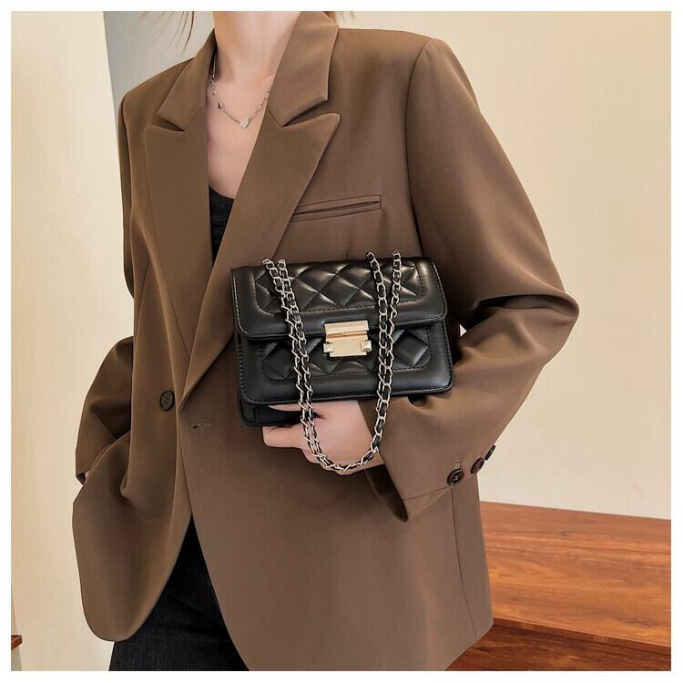 チェーンバッグレディースバッグ 2021 新しいトレンディな秋冬スタイルオールマッチニッチワンショルダーメッセンジャーバッグテクスチャブラックスモールバッグ オータム 秋物 ウィンター 冬物 maibag3785637397