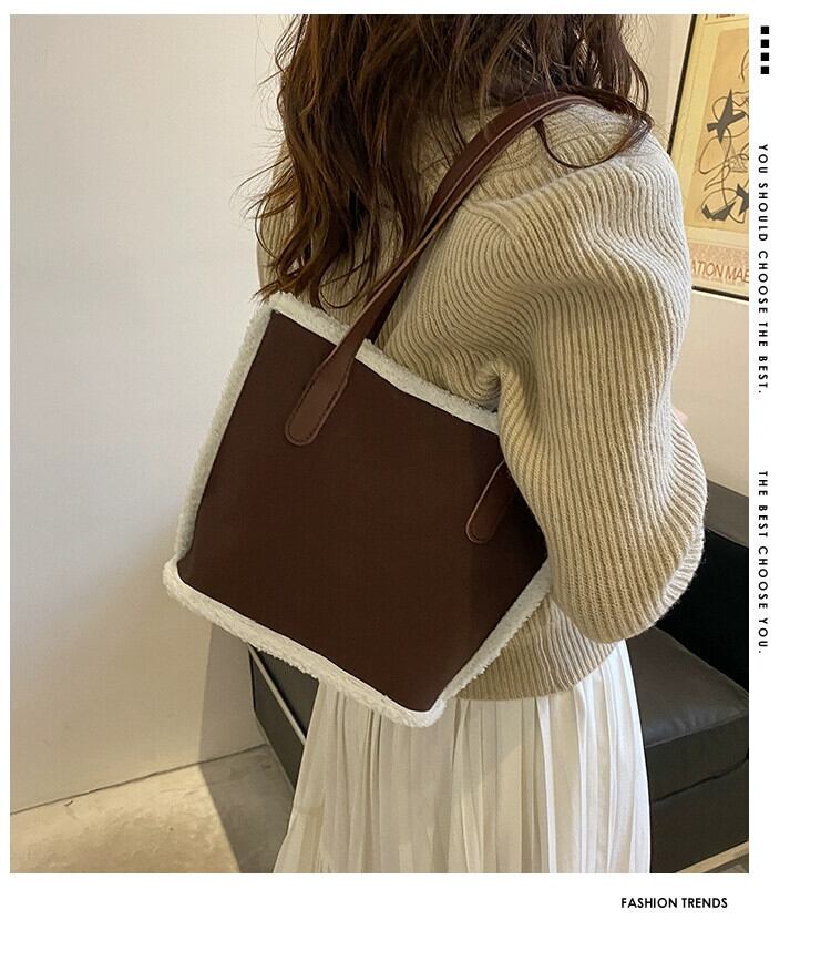 秋と冬のラムウールバケットバッグ女性 2021 新しいトレンディなファッションカジュアルニッチインポータブルシングルショルダー脇の下バッグ オータム 秋物 ウィンター 冬物 maibag20505112490