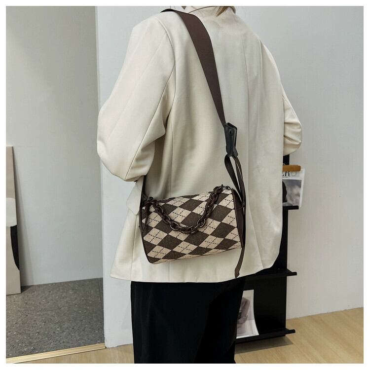 ニッチデザインバッグ女性 2021 新しいトレンディなネットレッドファッションチェック柄バケットバッグレトロオールマッチインメッセンジャーバッグ maibag75686103274