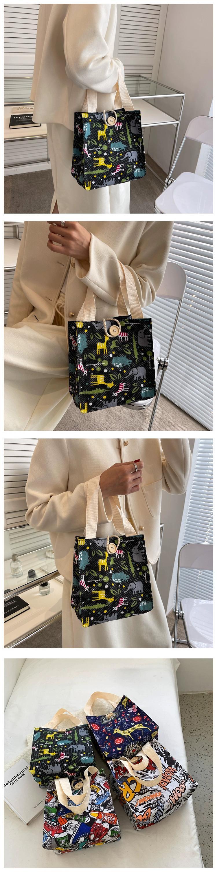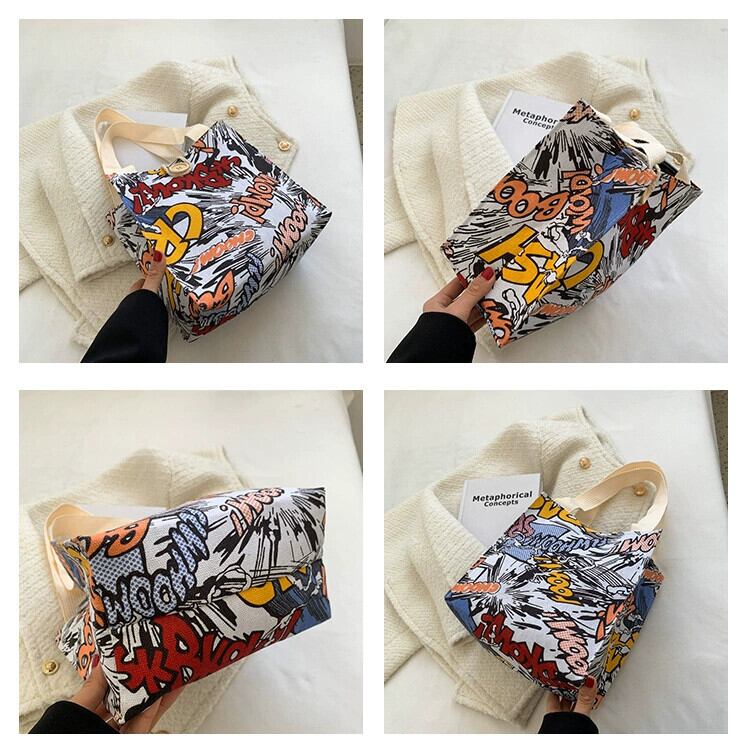 パーソナライズされた落書き大容量バケツキャンバスバッグインス布ランチバッグヒットカラーポータブルランチボックスバッグ女性 maibag74322991678