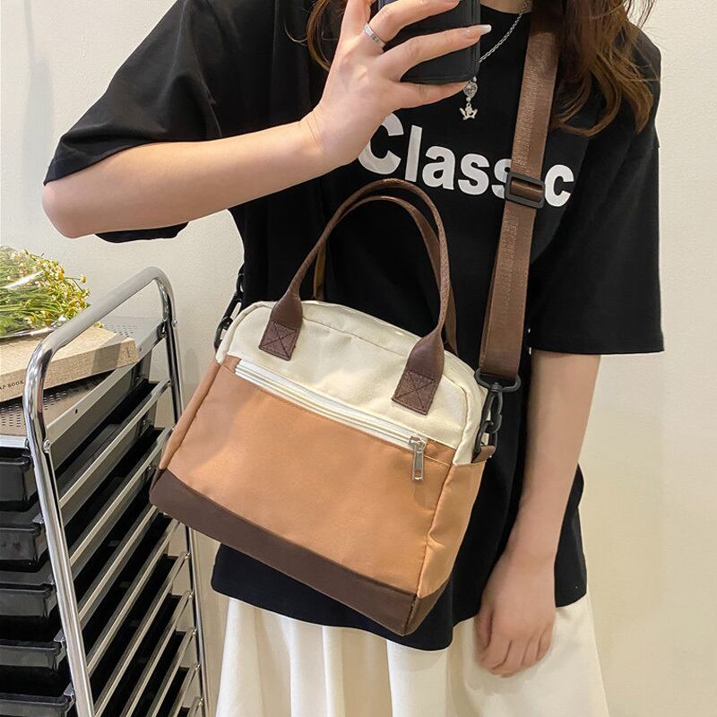 コントラストカラーの大容量バッグレディースバッグ 2022 新しいトレンディなファッションキャンバスショルダートートバッグニッチデザインバケットバッグ maibag81597795199