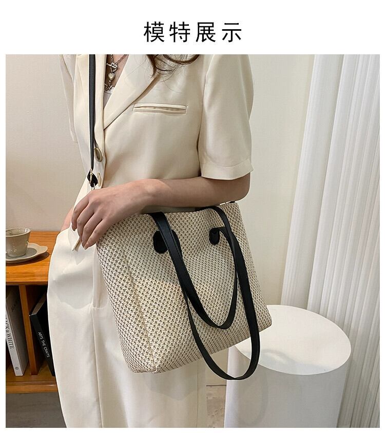 イン夏わら織りバッグ大容量ショルダーメッセンジャーバッグファッション織りトートバッグ休暇風のビーチバッグトレンディなバッグ サマー 夏物 maibag86207563861