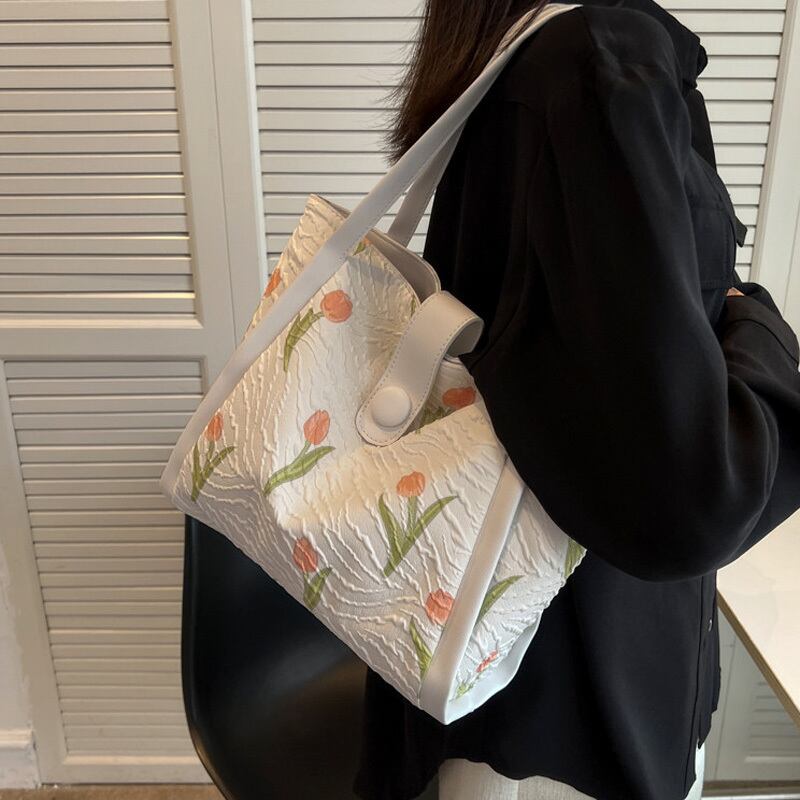 ese オールマッチニッチキャンバスバッグレディース大容量トートバッグファッション通勤フラワーワンショルダー脇の下ショッピングバッグ フラワーデザイン maibag79064801189