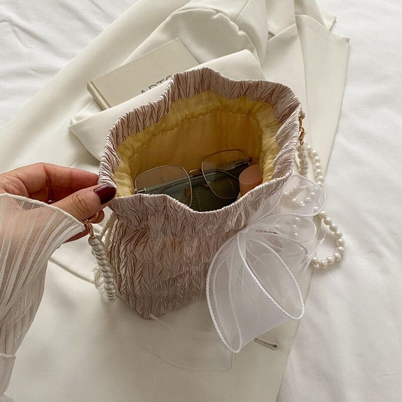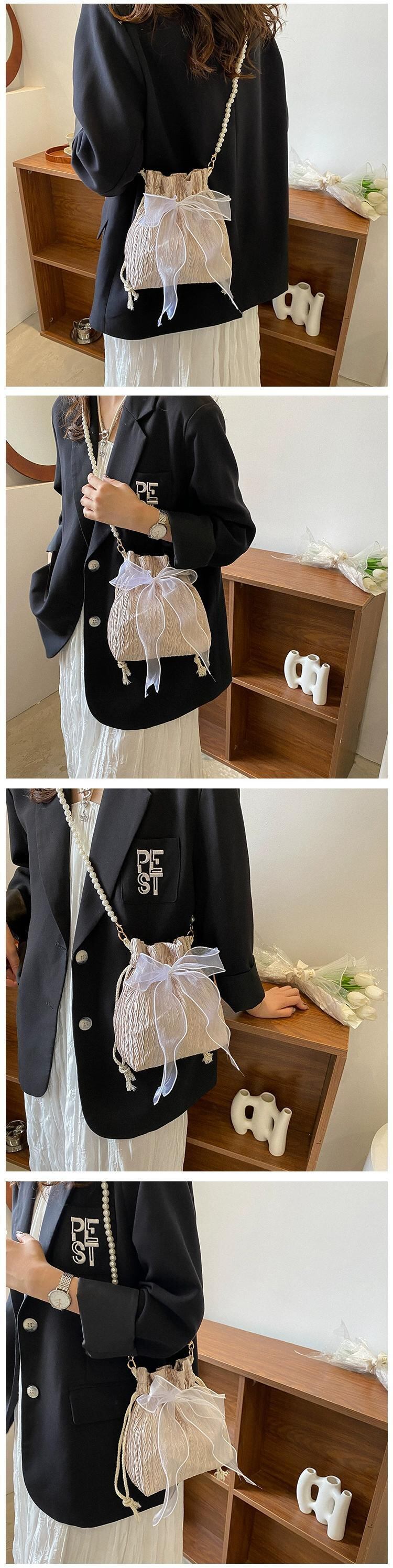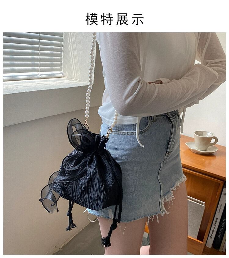 今年人気のニッチスーパーバッグレディース2022新作メッセンジャーバッグリボンテクスチャーパールチェーンバケットバッグ 真珠 maibag72649765098