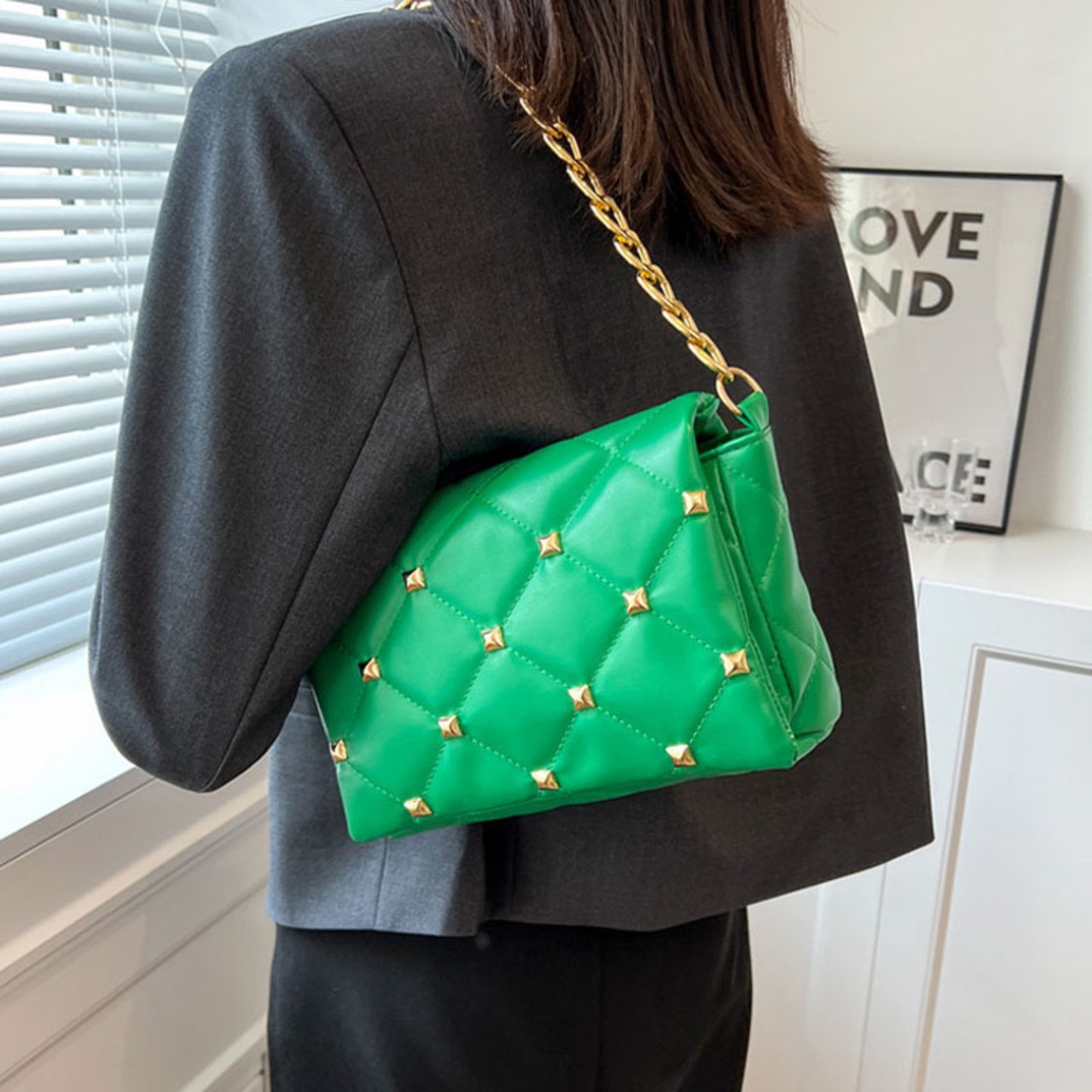 今年の人気の 2022 新しいトレンディなバッグ女性ニッチオールマッチメッセンジャーバッグファッション菱形チェーンリベット小さな正方形バッグ スクウェア maibag20492308368