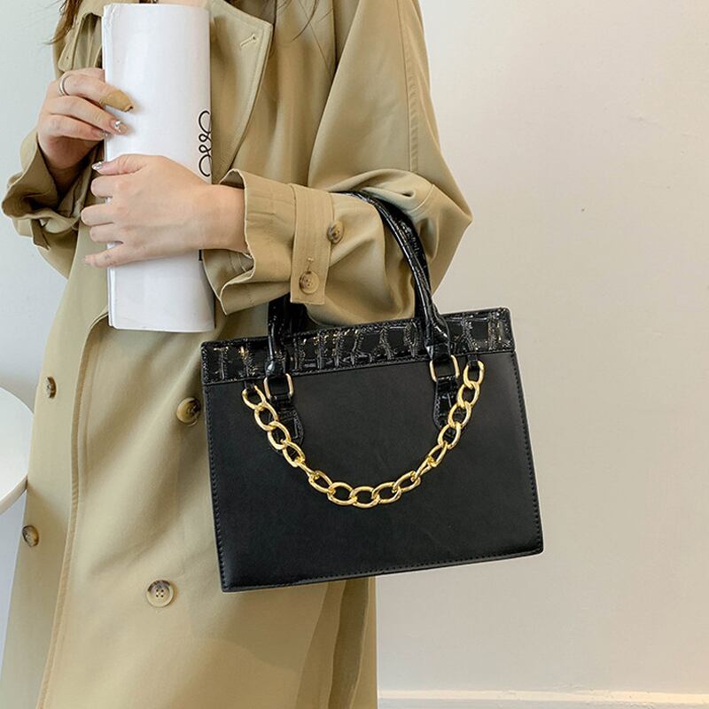 2022 新レトロワニ柄手持ち小型スクエアバッグ公式文書ワンショルダー斜めヒットカラーバッグトレンディ スクウェア maibag46663484901