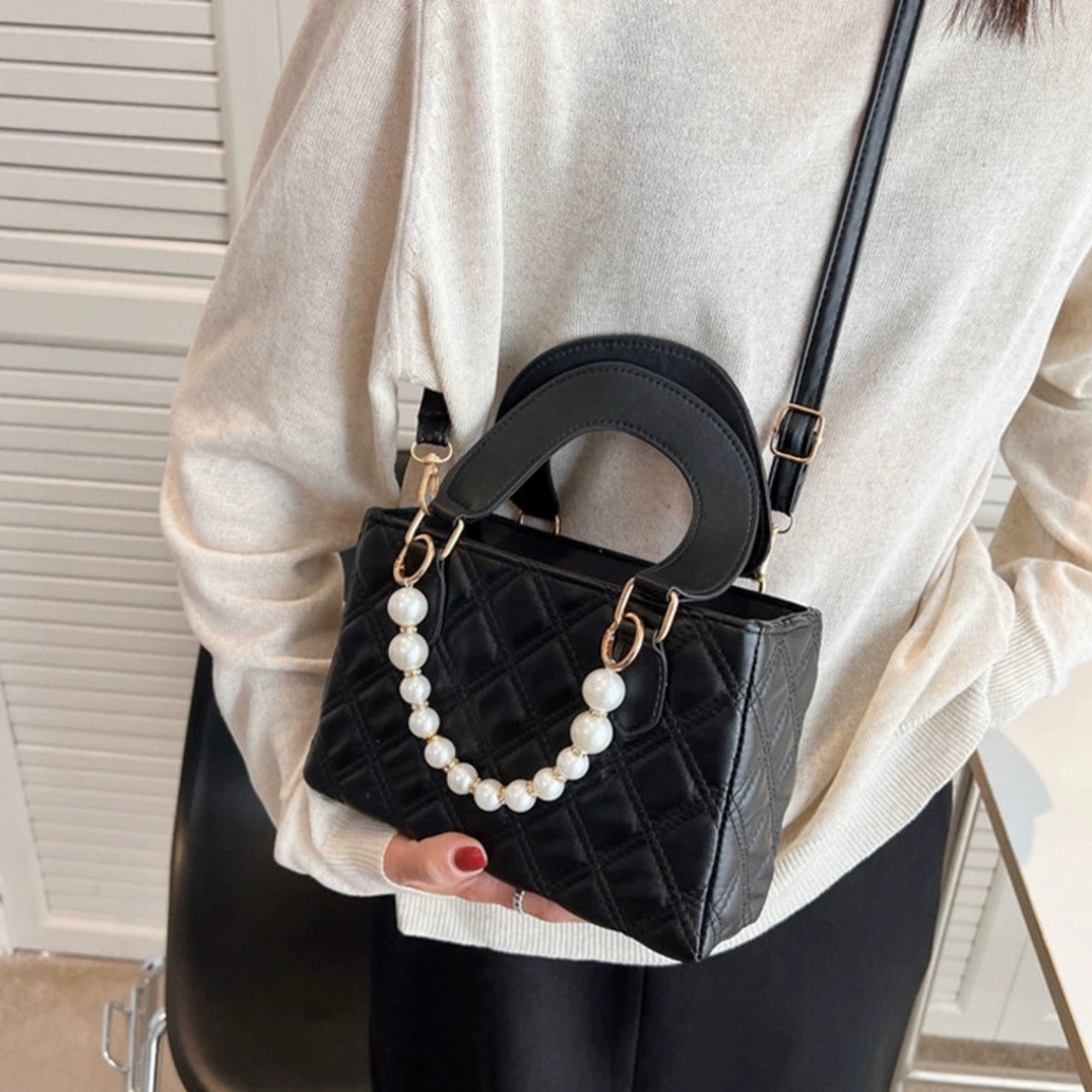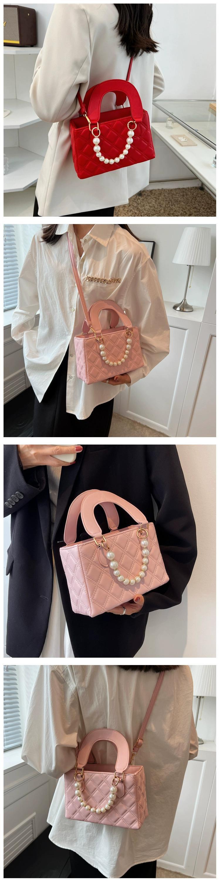 マイノリティデザインパールチェーン小さなスクエアバッグ女性 2022 新人格菱形刺繍糸オールマッチワンショルダーメッセンジャーバッグ 真珠 スクウェア maibag58917303620