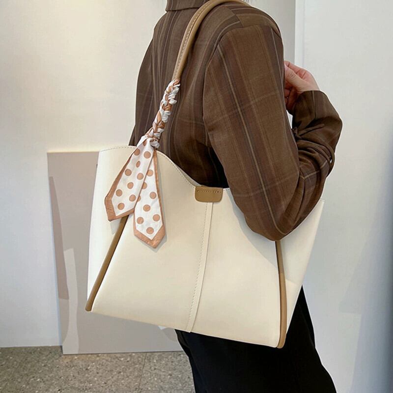 大容量バッグレディース2022新色コントラストシンプルで絶妙なシルクスカーフ通勤オールマッチファッションワンショルダートートバッグ maibag87747834530