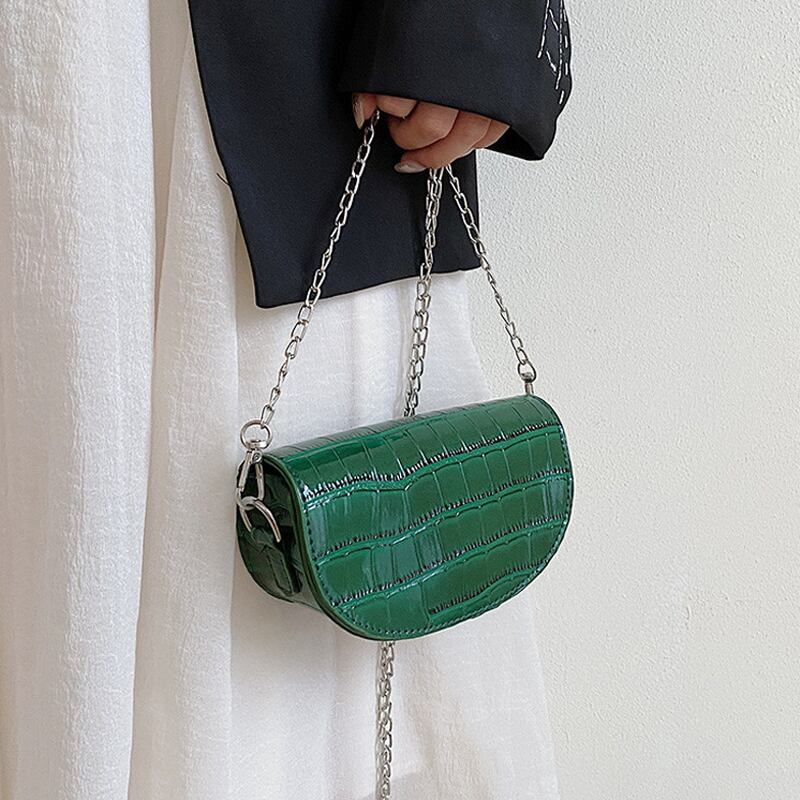 レトロサドルバッグ女性 2022 新しいトレンディなファッションパテントレザークロコダイルパターンチェーンオールマッチインショルダーメッセンジャーバッグ シートバッグ maibag9171329953