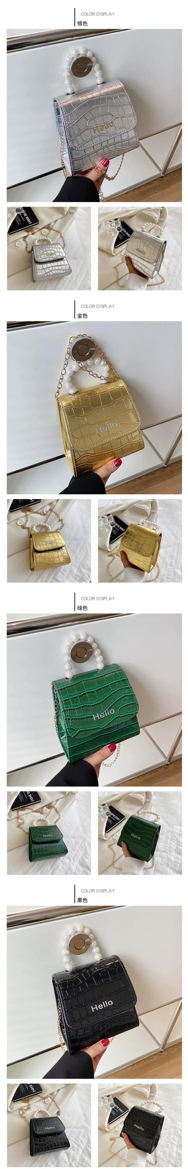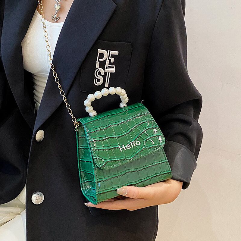 バッグ 2022 カジュアルバージョンオールマッチチェーンパールワニ柄シンプルメッセンジャーレトロパテントレザーファッションスモールスクエアバッグ 真珠 スクウェア maibag68893785626