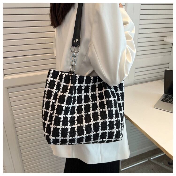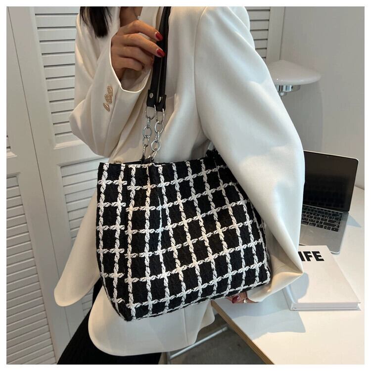-end ニッチデザインバッグレディース 2022 新しい大容量スエード手持ちトートバッグ市松模様のショルダーバッグ スウェード maibag62123206754