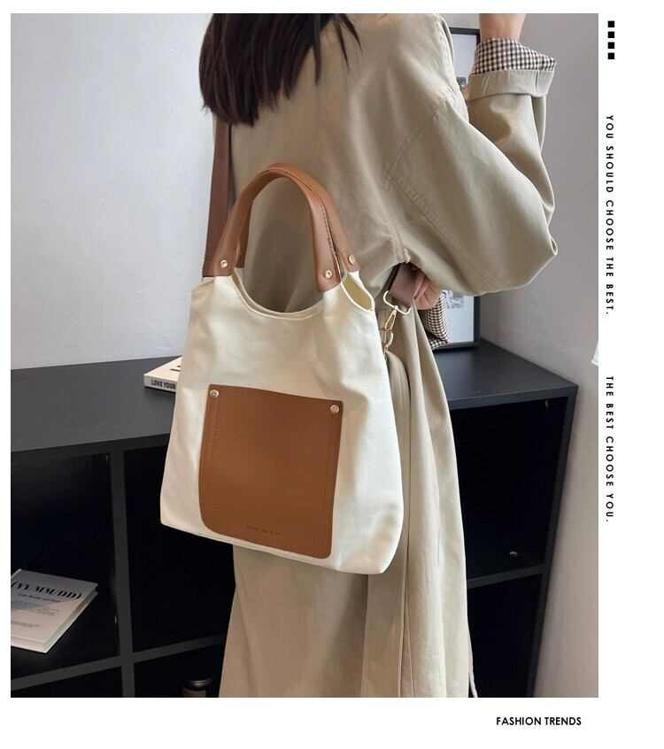 ポータブルアートキャンバスバッグ女性メッセンジャーバッグニッチステッチカラーコントラスト通勤トートバッグショルダーショッピングバッグ maibag88160365394