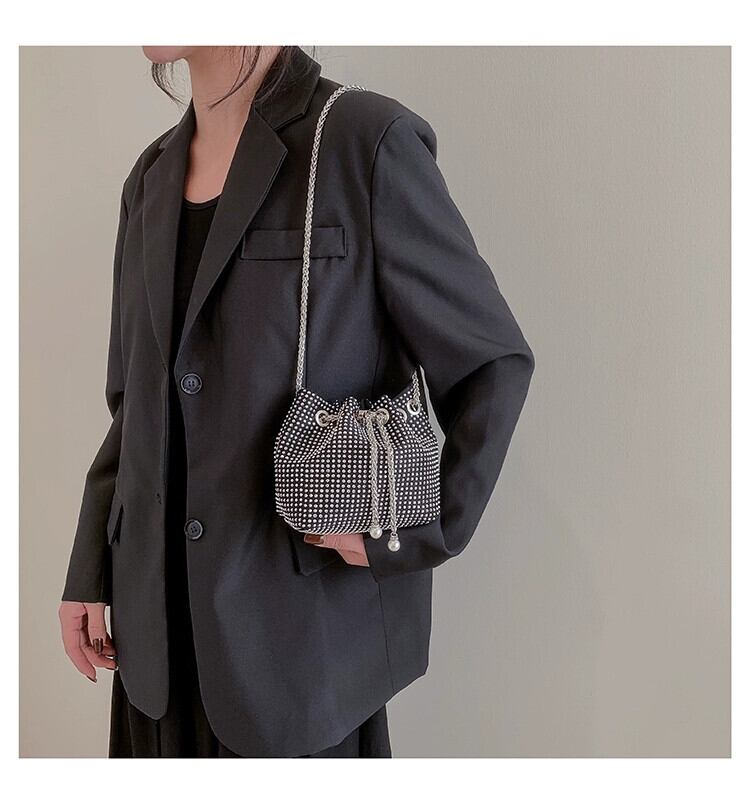 フルダイヤモンドラインストーンバッグ女性 2023 新しいトレンディなオールマッチメッセンジャーバッグインパールチェーンバッグポータブルバケットバッグ 真珠 maibag31396941446