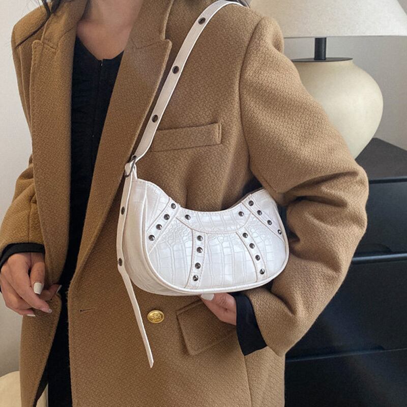 バッグレディース 2022 新しいハイエンドテクスチャニッチワンショルダー脇の下バッグ秋冬オールマッチリベットクロコダイルパターンメッセンジャーバッグ オータム 秋物 ウィンター 冬物 maibag12327205483